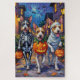 Adorable Wire Fox Terrier, die in verspielten Halloween-Kostümen gekleidet sind, tragen Kürbiseimer, während sie unter dem mondbeleuchteten Himmel tricksen oder behandeln. Dieses festliche Design hebt den wirren Mantel der Rasse, den warmen Ausdruck und die energetische Persönlichkeit hervor, die perfekt die sprichwörtliche und dennoch lustige Atmosphäre Halloween-Abends einfangen. Ein fröhliches und lebendiges Fest für Hundefreunde und Halloween-Fans.