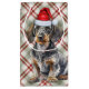 A cute wire-haired Dachshund dressed for the season in Santa's hat, pairs with a retro red and green holiday plaid to create a wonderful gift bag for the dog lover's holiday season.