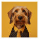 Niedliche und sonnige DrahthaarDackel mit Blazer und gelb mit Krawatte