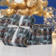 This festive design captures the joyful spirit of the holiday season, featuring an adorable dogs.Nestled in a winter wonderland, complete with a decorated Christmas tree, and beautifully wrapped presents. Snowflakes gently fall, adding a magical touch to the scene, while the vibrant colors of the holiday decorations create a warm and cheerful atmosphere.