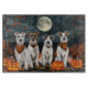 Entfesseln Sie den unheimlichen Geist mit diesem unheimlichen Halloween-Design, das eine Hundepackung unter einem dunklen, mondbeleuchteten Himmel bietet, umgeben von fliegenden Fledermäusen und glühenden Kürbissen. Ideal für diejenigen, die mit ihren wütenden Freunden eine Touch voller Furcht Liebe haben!