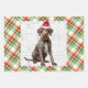 An adorable German Wirehaired Pointer dog is ready for the holiday season with his Santa hat. This cute Christmas dog is paired with a red and green holiday plaid on this set of gift wrap for the dog lover.