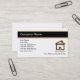 Wirkliche Anwesengeschäftskarten mit Haussymbol und Gold farbigem Namensemblem, zusammen mit einem großen Textbereich können Sie in diesem modernen Entwurf besonders anfertigen. Beste Geschäftskarten für Themen bezogen sich auf wirklichem Anwesen, Realtors, Vermittlern, Erbauern, Abschätzern oder Inspektion.