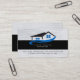 entworfen durch paplavskyte. Kauf-, Miet- oder Verkaufshaus-Visitenkarte. Wirklicher Anwesen-Agent, Blau, Schwarzes, graue Farben mit Licht streifte Hintergrund ab. Vervollkommnen Sie für Haus/Wohnung Verkäufer oder Renter. Macht wirklichen Anwesenmanager sichtbar, das Gebäude mieten oder kaufen. Verziert mit blauen Dächern und Fenstern.