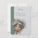 Eine schöne Blumenmädchen-Anfragekarte mit einem jungen Cartoon-Mädchen, das hinter einer grünen Wand hervorschaut.