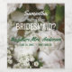 Dieses Brautparty Weinflaschenlabel besticht durch ein wunderschönes Foto an weiße Miniatur-Nelken und den Atem des Babys als Hintergrund. Der weiße, benutzerdefinierte Text lautet: Werden Sie mein BRIDESMAID sein? Passen Sie Ihren Namen und den Namen der Brautmädchen an.