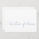 Dieses minimalistische Design ist perfekt für die moderne Braut! Mit einem handgeschriebenen Signaturskript gepaart mit einem einfachen serifenlosen Schriftart in staubblauer Farbe für einen subtilen Pop. Personalisieren Sie Ihre eigene Nachricht auf der Rückseite, oder bestellen Sie sie leer und schreiben Sie Ihre Nachricht handschriftlich. Karo aus dem Laden für passende Bridesmaid-Karten!