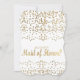 Das ist eine elegante und glamouröse, Imitat Goldfolie Konfetti "Werden Sie meine Trauzeugin sein?" Einladungen. Es ist ein sehr klassisches und raffiniertes Design für die Braut, die will, ihre Trauzeugin zu einem besonderen und beliebten Gefühl zu machen. Personalisieren Sie Ihre eigene Nachricht und das Monogramm auf der Rückseite. Das gesamte Foto-Druckdesign.