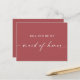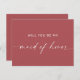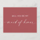 Laden Sie Ihre Trauzeugin mit dieser minimalistischen Vorschlagskarte in gedämpftem Ziegelrot ein. Der warme Erdschatten macht es zu einer idealen Wahl für Hochzeiten im Herbst, rustikale Brautpartys und inspirierte Vorschläge im Herbst. Eine einfache und elegante Art und Weise, Ihre beste Freundin oder Schwester fragen, an Ihrem Platz zu stehen, an dem großen Tag.