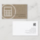 Diese Visitenkarte des Buchhalters verfügt über ein großes, lichtdurchlässiges weißes Symbol eines Taschenrechners. Der Hintergrund ist eine natürliche, hellbraune Papierstruktur, in der Ihr Name und Titel auf der unteren rechten Seite der Karte erscheinen. Das Gesamtdesign ist minimalistisch, ideal für Verwaltung, Buchhaltung, Finanzen, Marketing, berufliche Themen.