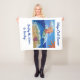 Kunst zeigt den "Wischen Sie Krebs ab" Engel. Das Bild zeigt einen glitzernden orangen Surfgel auf einem blauen Ozean mit einer strahlenden Sonne. Meeresschaum wäscht sich auf dem Sand, der die Worte "Krebs abwischen" umgibt. Am Strand gibt es eine rosa Muschel. Das Gemälde wurde in Acryl gerendert und mit Glitzer für Textur und Glanz bestreut. Die Wörter sagen: "Krebs löschen. Surf the Waves to Healing", aber du kannst die Chemodecke mit deiner eigenen personalisierten Nachricht anpassen. Machen Sie sich individuelle Decks für das Krebsbewusstsein oder als Geschenk für einen geliebten Menschen. Fügen Sie Ihre eigenen Worte oder Bilder zu dieser weichen Decke für besondere Krebsgeschenke hinzu.