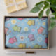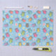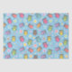 Ein spielerisches und farbenfrohes, nahtloses Muster mit Cartoon-Eulen in verschiedenen hellen Farben wie Rosa, Orange, Grün, Braun und Blau. Die Eulen sind von einer Mischung aus kleinen, bunten Blume umgeben, auf einem weichen blauen Hintergrund, was ein fröhliches und skurriles Design schafft. Ideal für Kinderprodukte.