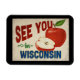 Ein charmanter Wisconsin-Kühlschrank-Magnet mit einem hübschen roten Apfel, zusammen mit einem lustigen Retro-Text, der sagt: "See you in Wisconsin"