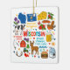 Commemorate your trip to the state of Wisconsin with this modern keepsake Christmas ornament, featuring hand-drawn style illustrations of iconic food, animals, landmarks, landscapes, and culture. Personalize the back to mark your US adventure and create a memory you'll hang up on the tree for the Holidays year after year.