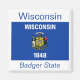 Ein echtes Bild in feiner Qualität des Wisconsin-Set zwischen dem Namen des Staat und dem Spitznamen über einem farbigen Hintergrund.