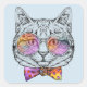 Dieses Design zeichnet sich durch eine niedliche, coole Katze mit Regenbogengläsern und eine polka gepunktete Bugbrille Krawatte aus.