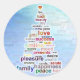 Der Baum bildete sich mit Worten und einem Single Herz an der Spitze. Tree hat die Worte Spaß, Gesundheit, Glück, Schönheit, Freude, Weisheit, Lächeln, "neues Jahr", Umarmungen, Liebe, Geschenke, Feiertage, Wünsche, Erfolg, Freiheit, Witz, Sonne, Lächeln, Geld, Großartigkeit, Laune, Lachs, Vergnügen, Vermögen, Träume, Familie, Glück, Frieden und Hoffnung.