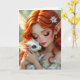 A birthday card for any girl or woman. On the front is a beautiful red haired fairy holding her ittle white dragon with purple chibi eyes. Inside it wishing someone a magical birthday and also has a surprise coloring page.