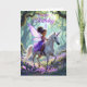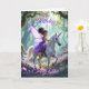 A beautiful African-American fairy in purple riding on a white magical unicorn through an enchanted forest. Pretty fairy tale forest themed birthday card for a niece with an inside coloring page of a unicorn sitting in flowers and cupcakes. Bring some magic into someone's day with this pretty card.