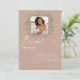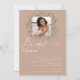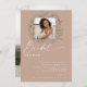 Zeitlose Eukalyptus-Blätter vor Terrakotta-Hintergrund bilden einen klugen Kranz um dieses besondere Foto der zukünftigen Braut und schaffen eine elegante und romantische Aura. Paare gut mit den meisten eukalyptus-thematischen Hochzeitsartikeln. Einfach mit Ihren persönlichen Daten und Fotos auf der Vorder- und Rückseite der Karte anpassen.