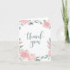 Dieser zeitgenössische Stil mit Dankeschön-Karte zeichnet sich durch eine weiche Blumengrenze aus pastellrosafarbenen Pfannkuchen und gemischten Blume aus, die mit den hintersten bläulich-grünen Ästen und Blätter verstreut sind. Es hat aquamarine Dankeschön-Text, der in einem modernen Pinselskript-Schriftbild entworfen wurde. Die Karte ist innen leer, um Ihre persönlichen Danksagungen schreiben zu können, oder Sie können die Innenseite durch Hinzufügen einer typisierten Nachricht anpassen.