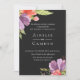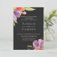 Delikate violette und rote Aquarellfarben florale Arrangements auf schwarzem Schiefer Hintergrund, Hochzeitseinladung. Anpassen von Text, Schriftart, Farbe und Größe.