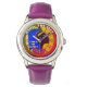 Kinderuhr aus Edelstahluhr mit lila Lederarmband