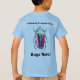 Kinder T - Shirt mit dem Bild des bunten Käfers. Im Text steht auf der Rückseite "Bugs Rule" und auf der Vorderseite "Was ist ein Fehler?". Dies ist eine echte farbige Bleistiftzeichnung. Artist-Liz Carrozza Artist-Liz Carrozza