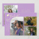 Moderne und launige Abschlusskarten-Fotokarte mit 3 Fotos auf der Vorderseite und 1 auf der Rückseite. Der Text sagt "Danke" mit funkelnden Sternen. Fügen Sie den Namen des Absolventen, Informationen und eine Nachricht hinzu, um diese Karte zu personalisieren. Wisteria.