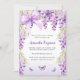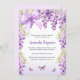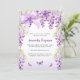 Ein eleganter, weißer und lila Hintergrund mit lavenfarbenen Wisteria-Blume, Schmetterlingen und Bogen. Personalisieren und fügen Sie einen Namen und Party-Details hinzu. Zurück: Lavendelfarbe
