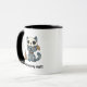 Angry looking cat with tattoo markings, bone necklace, and a skull on top of its head is sitting beside a voodoo doll with pins. Customizable text.