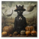This whimsical Halloween artwork features a stylish black cat dressed as a Victorian witch, surrounded by a quirky array of jack-o'-lanterns under a surreal autumn sky. A perfect blend of spooky and charming, this fantasy print is ideal for Halloween lovers, gothic decor fans, and anyone who enjoys magical realism with a feline twist.