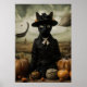 Witch Cat with Pumpkins Poster