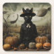 Witch Cat with Pumpkins Rechteckiger Pappuntersetzer