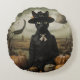 Witch Cat with Pumpkins Rundes Kissen