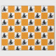 Witches on Orange & White Checkered Wrapping Paper Geschenkpapier