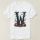 This is a spooky Halloween-themed illustration featuring a large, dark, tree-like letter 'W' silhouetted against a fiery orange full moon or sunset. The scene includes two grinning jack-o'-lanterns at the base, bare tree branches forming the edges of the letter, and two bats flying across the bright background.