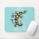 Halbmond-Mousepad mit einer schattigen Vektorgrafik dieses gelben Himmelskörpers verpackt abstrakten Lilienfarben Blume über hellblauen Hintergrund mit kaum sichtbaren weißen Wolken. Dieses seltsame digitale Kunstwerk auf dem Mond wird in einem Stil gezeichnet, der Tätowierungen mit dicken schwarzen Konturen ähnelt. Es hat eine Mischung aus gotischem und böhmischem Flair.