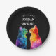 Celebrate love in full color with this striking paper plate from the "Purrfectly Yours: A Rainbow Love Collection." Designed to honor joyful unions and unforgettable celebrations, this round plate features a bold black background that highlights the centerpiece — two watercolor rainbow cats lovingly gazing into each other’s eyes. The vivid blues, purples, reds, oranges, and yellows of the feline pair radiate warmth, connection, and pride.