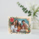 A cheerful Christmas postcard featuring a customizable photo framed by poinsettias, holly, pine branches, and a glowing lantern. A red gift box adds festive flair beneath elegant “Merry Christmas” script. All text—front and back—is fully customizable to share your warmest holiday wishes.
