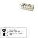 Eine coole schwarze Katze mit großen Augen und einem kurbelnden Schwanz zeigt eine humorvolle Gummianschrift. Es zeigt den Namen und die Adresse an. Passen Sie den Text an und personalisieren Sie ihn. Niedliches, lustiges, cooles, spukhaftes Design für diejenigen, die eine Briefmarke für das Adressetikett wollend, auf eine neue Zuhause umziehen, Adressenwechsel, Katzenliebhaber, Kitten und Haustierbesitzer.
