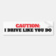 Witzige Vorsicht, ich fahre wie du Autoaufkleber