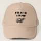 Wählen Sie Ihre Lieblingsfarbe aus diesem lustigen Hut mit Text: "Ich bin mit dumm" und Zeiger Hand.