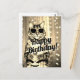 Foto der Party-Katze mit Sonnenbrille, die Glas hält. Einzigartige und lustige Art, jemandem zum Geburtstag zu wünschen.