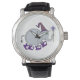 Uhr, Klassische Damenuhr mit schwarzen Lederarmband
