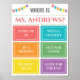 Lass den Schülern, wo du mit diesem Türschild bist. Halten Sie es an Ihrer Bürotür fest und klammern Sie eine Knöpfe, um anzuzeigen, wo Sie sind.