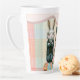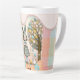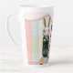 Wo ist der Zuckerguss? Latte Tasse in zwei Größen mit kariertem Hintergrund und Beatrix und Benedict auf der Vorderseite in Frühlingsfarben.
