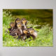 Eine köstliche Brut von Stockenten-Entenlingen schaut von ihrem weichen Grasnagel neben einem ruhigen Teich aus.