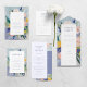 Ein wunderschön bemaltes Blumenhochzeitprogramm in lila und Lavendel.