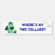 Wo meine zwei Dollar ist Autoaufkleber